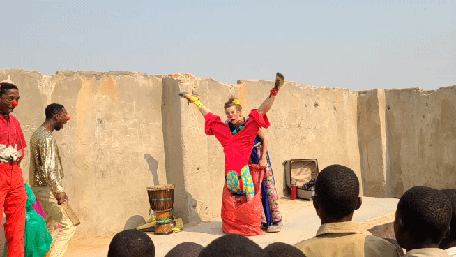 Traveled with Clowns Without Borders USA to Zimbabwe to bring laughter, play, and connection to communities impacted by displacement. Our team performed and led workshops for environmental refugees in and around Harare, as well as at Tongogara Refugee Camp—home to over 22,600 refugees and asylum-seekers.